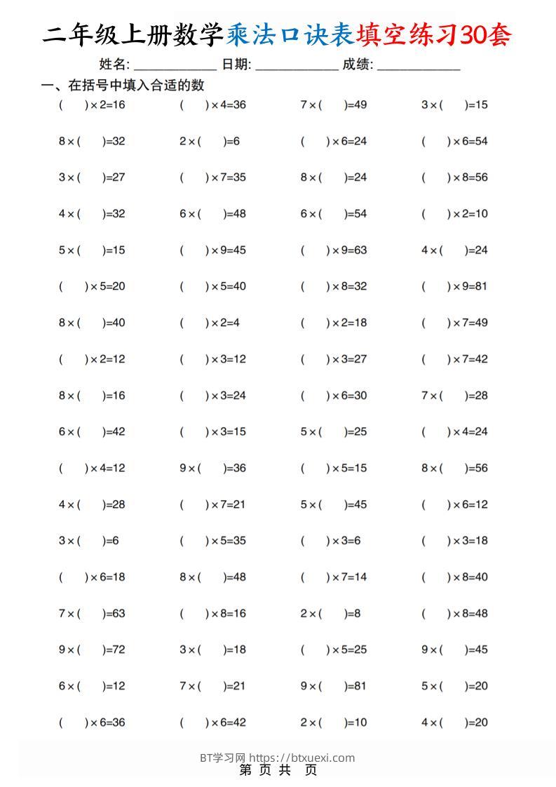 二上数学乘法口诀表填空练习30套30页超级管理员25年10月4日发布关注私信04906 ——预览已结束,还剩28页未读——开通会员后可免费下载高清完整文档 © 版权声明文章版权归作者所有,转载请注明来源,未经允许请勿转载。本站内容均来自用户投稿或网络公开收集,本站只做展示,不对内容真实性负责。THE END小学数学 喜欢就支持一下吧点赞6 分享QQ空间微博QQ好友海报分享复制链接收藏