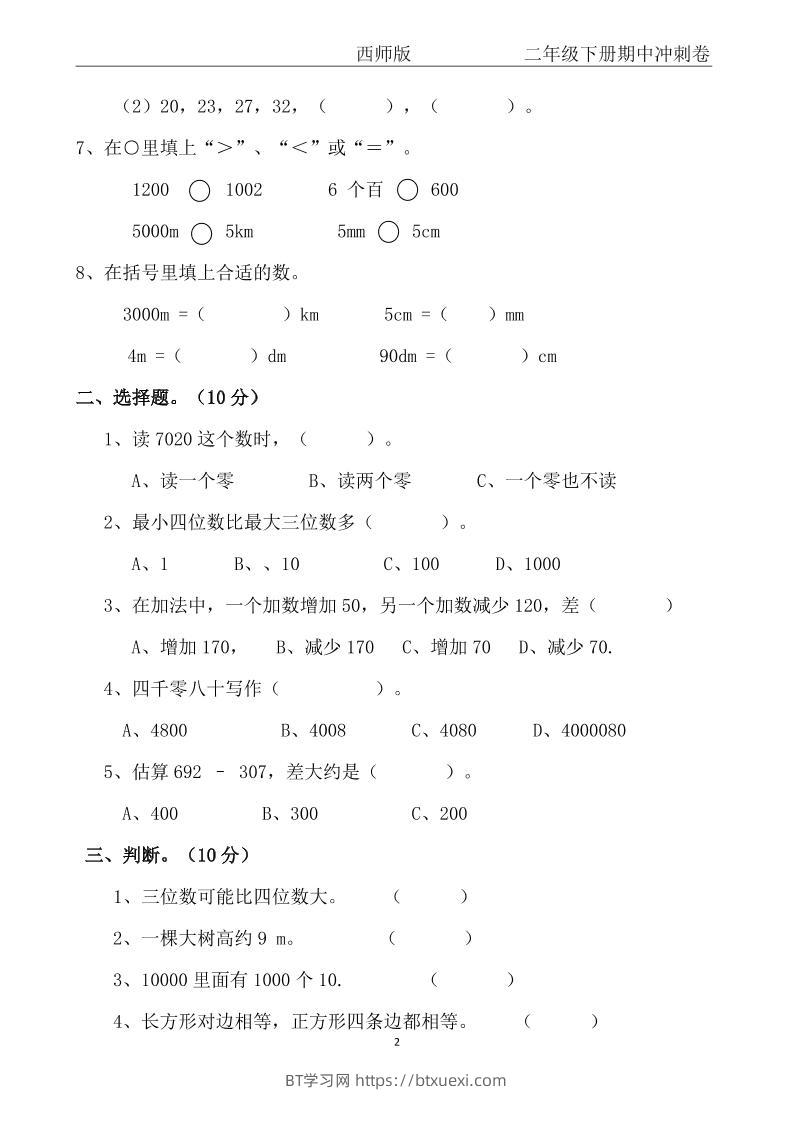 【西师版】二年级数学下册期中冲刺卷三套(含答案17页)超级管理员25年3月28日发布关注私信034411 ——预览已结束,还剩15页未读——开通会员后可免费下载高清完整文档 © 版权声明文章版权归作者所有,转载请注明来源,未经允许请勿转载。本站内容均来自用户投稿或网络公开收集,本站只做展示,不对内容真实性负责。THE END小学数学 喜欢就支持一下吧点赞11 分享QQ空间微博QQ好友海报分享复制链接收藏