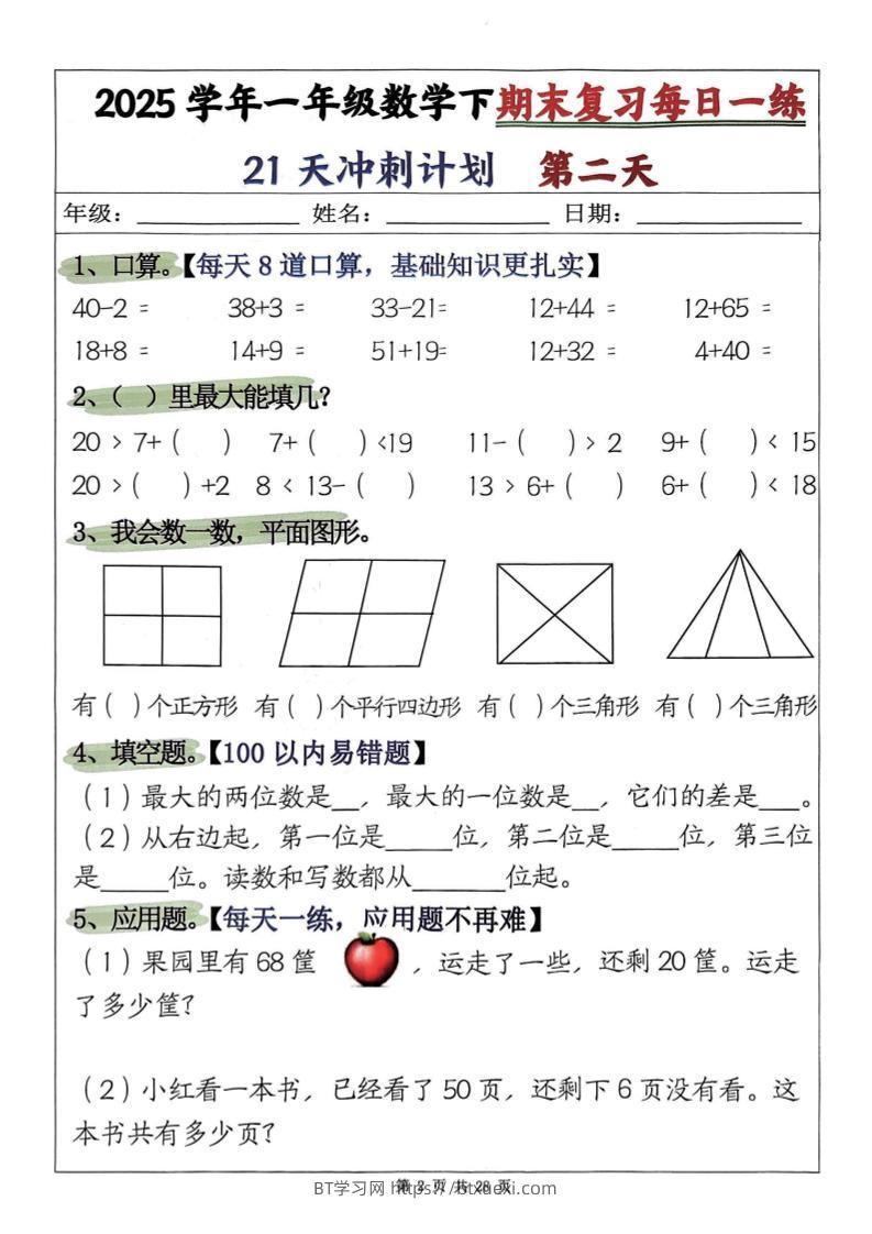 25学年一下数学期末复习每日一练21天冲刺计划第二套含答案28页超级管理员25年5月20日发布关注私信02669 ——预览已结束,还剩26页未读——开通会员后可免费下载高清完整文档 © 版权声明文章版权归作者所有,转载请注明来源,未经允许请勿转载。本站内容均来自用户投稿或网络公开收集,本站只做展示,不对内容真实性负责。THE END小学数学 喜欢就支持一下吧点赞9 分享QQ空间微博QQ好友海报分享复制链接收藏