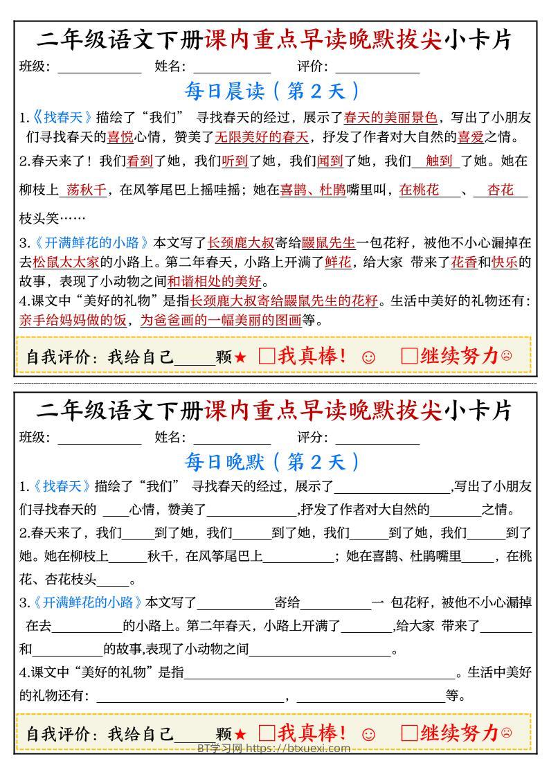 二年级语文下册期末复习课内重点早读晚默拔尖小卡片15页超级管理员25年5月26日发布关注私信03068 ——预览已结束,还剩13页未读——开通会员后可免费下载高清完整文档 © 版权声明文章版权归作者所有,转载请注明来源,未经允许请勿转载。本站内容均来自用户投稿或网络公开收集,本站只做展示,不对内容真实性负责。THE END小学语文 喜欢就支持一下吧点赞8 分享QQ空间微博QQ好友海报分享复制链接收藏