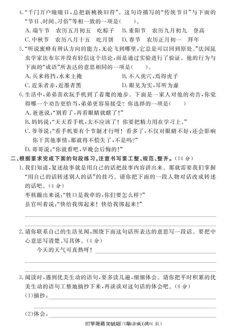 三下语文期末学情调研测试卷4超级管理员25年6月25日发布关注私信04186 ——预览已结束,还剩3页未读——开通会员后可免费下载高清完整文档 © 版权声明文章版权归作者所有,转载请注明来源,未经允许请勿转载。本站内容均来自用户投稿或网络公开收集,本站只做展示,不对内容真实性负责。THE END小学语文 喜欢就支持一下吧点赞6 分享QQ空间微博QQ好友海报分享复制链接收藏