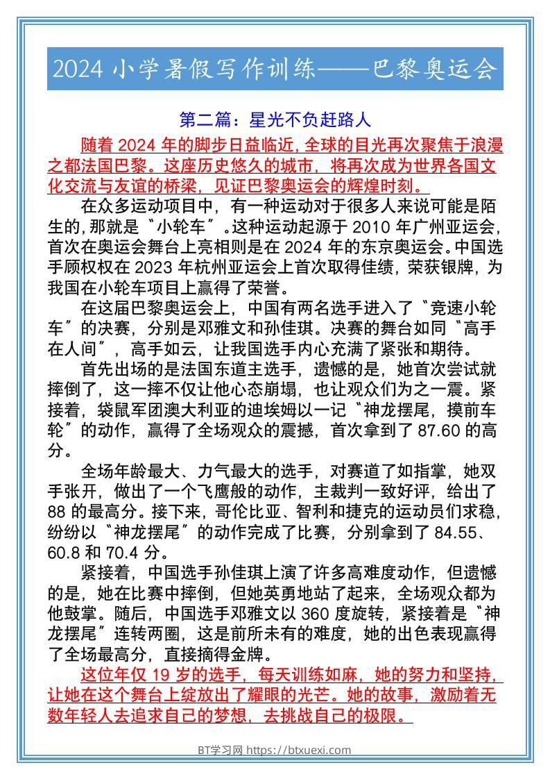 2024小学暑假写作训练——巴黎奥运会-小升初语文超级管理员25年7月4日发布关注私信02025 ——预览已结束,还剩2页未读——开通会员后可免费下载高清完整文档 © 版权声明文章版权归作者所有,转载请注明来源,未经允许请勿转载。本站内容均来自用户投稿或网络公开收集,本站只做展示,不对内容真实性负责。THE END小升初 喜欢就支持一下吧点赞5 分享QQ空间微博QQ好友海报分享复制链接收藏