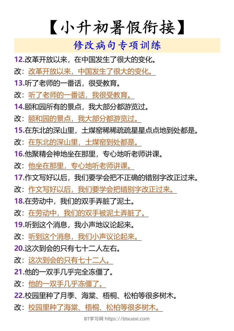 【小升初暑假衔接】修改病句专项训练-小升初语文超级管理员25年7月4日发布关注私信07913 ——预览已结束,还剩1页未读——开通会员后可免费下载高清完整文档 © 版权声明文章版权归作者所有,转载请注明来源,未经允许请勿转载。本站内容均来自用户投稿或网络公开收集,本站只做展示,不对内容真实性负责。THE END小升初 喜欢就支持一下吧点赞13 分享QQ空间微博QQ好友海报分享复制链接收藏