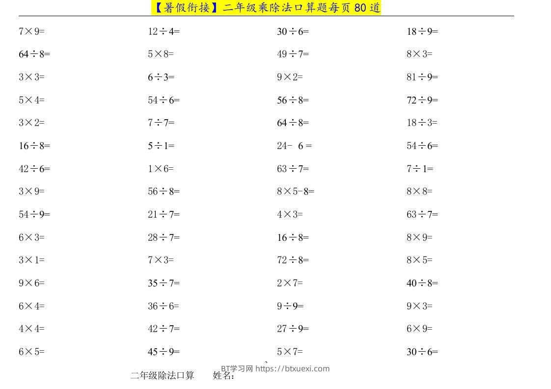 二升三年级数学暑假衔接乘除法口算题-三上数学超级管理员25年7月5日发布关注私信0726 ——预览已结束,还剩7页未读——开通会员后可免费下载高清完整文档 © 版权声明文章版权归作者所有,转载请注明来源,未经允许请勿转载。本站内容均来自用户投稿或网络公开收集,本站只做展示,不对内容真实性负责。THE END小学数学 喜欢就支持一下吧点赞6 分享QQ空间微博QQ好友海报分享复制链接收藏