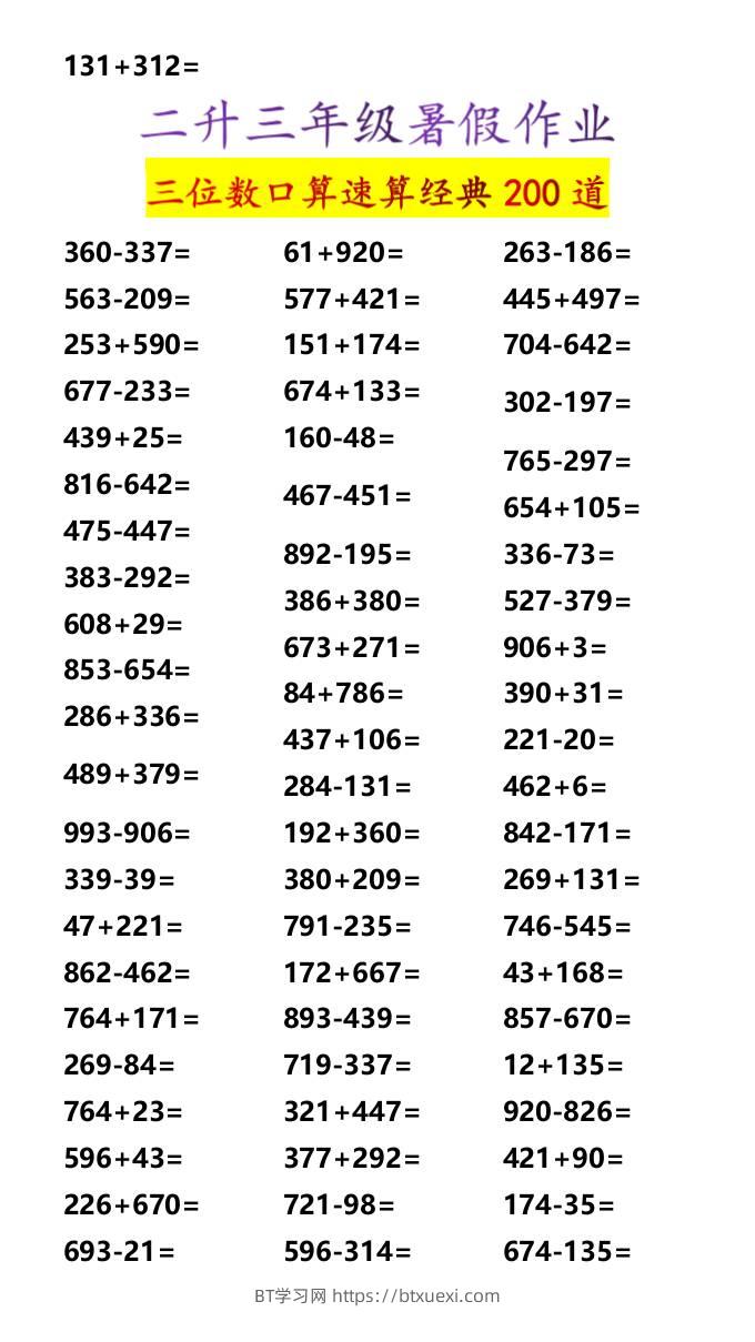 二升三年级暑假作业三位数口算速算经典200道-三上数学超级管理员25年7月5日发布关注私信023214 ——预览已结束,还剩2页未读——开通会员后可免费下载高清完整文档 © 版权声明文章版权归作者所有,转载请注明来源,未经允许请勿转载。本站内容均来自用户投稿或网络公开收集,本站只做展示,不对内容真实性负责。THE END小学数学 喜欢就支持一下吧点赞14 分享QQ空间微博QQ好友海报分享复制链接收藏