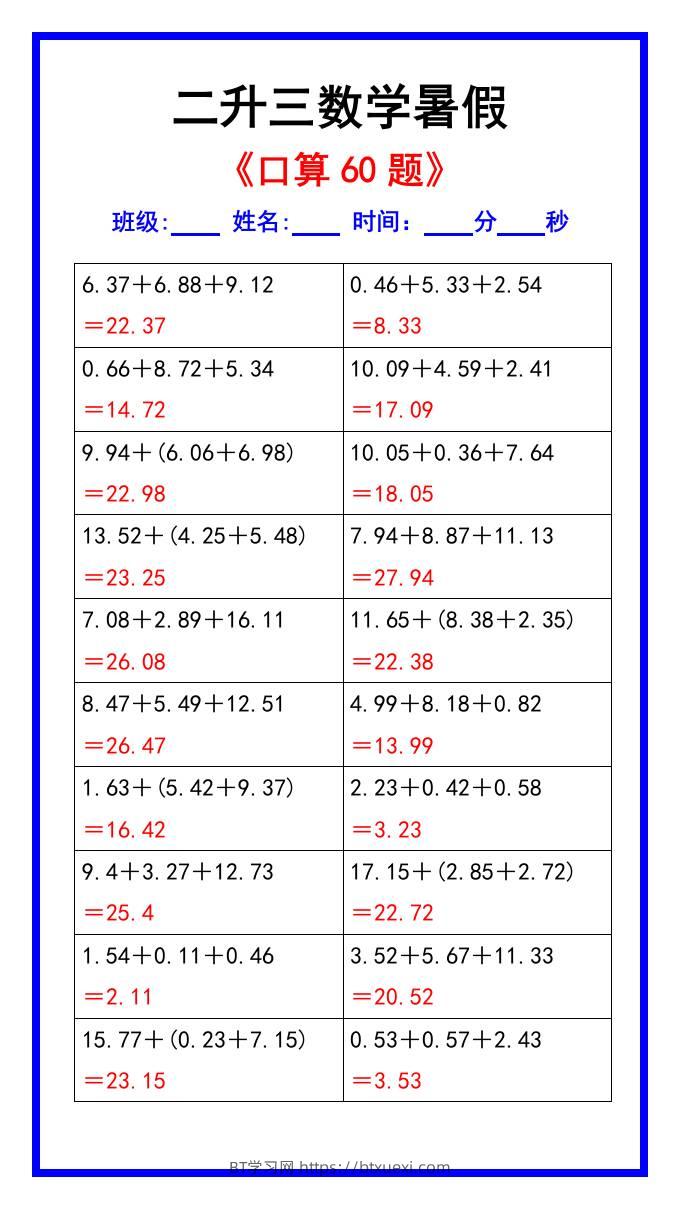 二升三数学暑假《口算练习60题》汇总-三上数学超级管理员25年7月5日发布关注私信015412 ——预览已结束,还剩2页未读——开通会员后可免费下载高清完整文档 © 版权声明文章版权归作者所有,转载请注明来源,未经允许请勿转载。本站内容均来自用户投稿或网络公开收集,本站只做展示,不对内容真实性负责。THE END小学数学 喜欢就支持一下吧点赞12 分享QQ空间微博QQ好友海报分享复制链接收藏