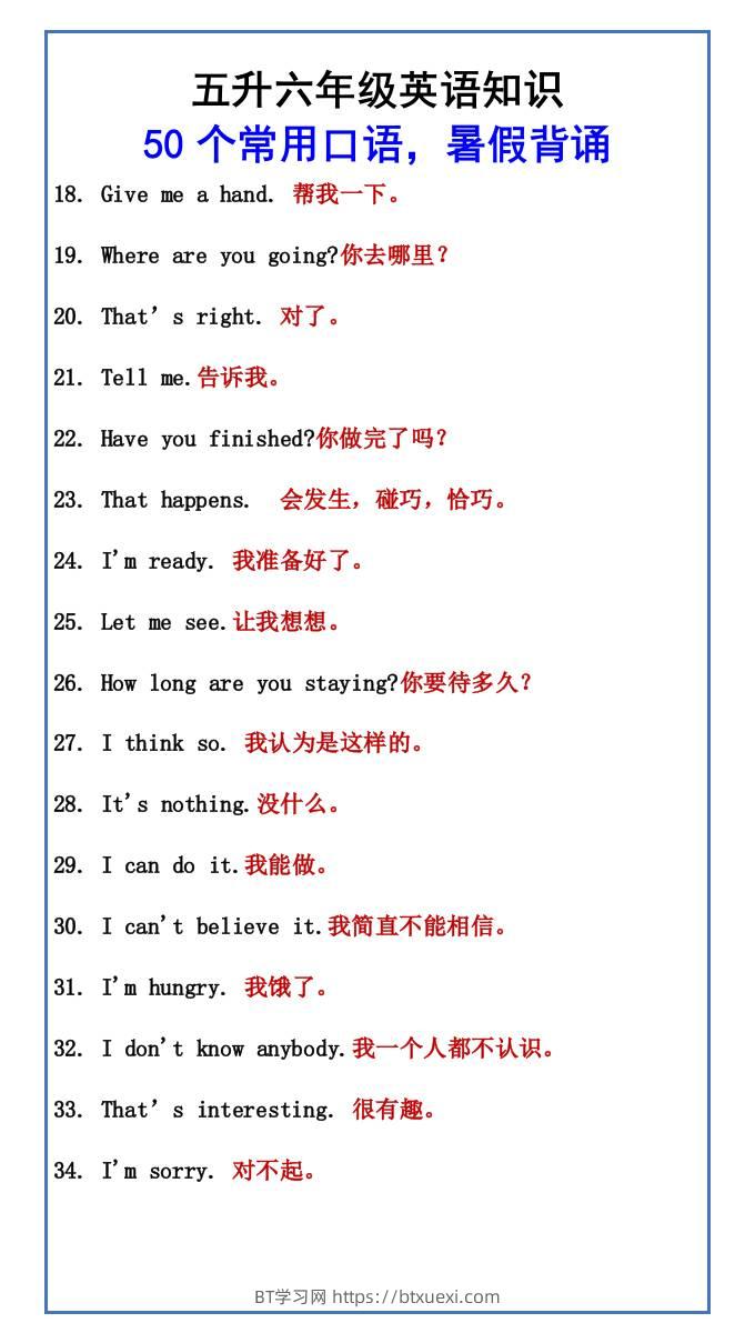 五升六年级英语知识50个常用口语,暑假背诵-六上英语超级管理员25年7月6日发布关注私信04539 ——预览已结束,还剩1页未读——开通会员后可免费下载高清完整文档 © 版权声明文章版权归作者所有,转载请注明来源,未经允许请勿转载。本站内容均来自用户投稿或网络公开收集,本站只做展示,不对内容真实性负责。THE END小学英语 喜欢就支持一下吧点赞9 分享QQ空间微博QQ好友海报分享复制链接收藏