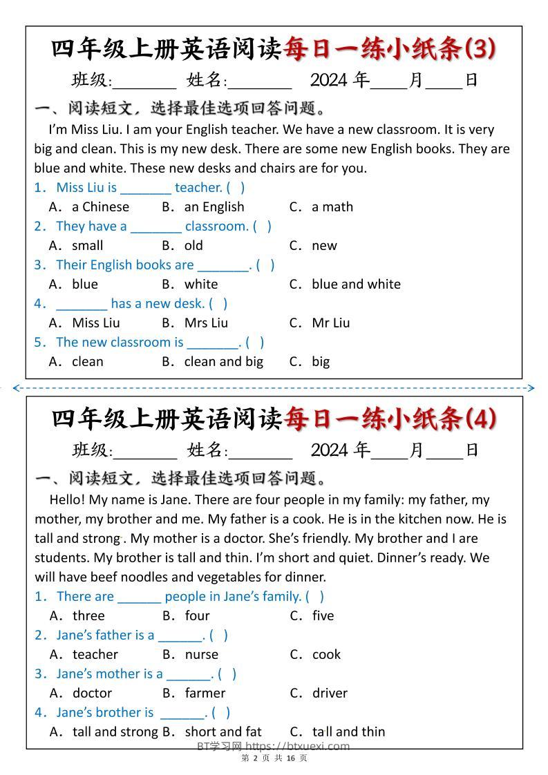 四上英语阅读每日一练小纸条超级管理员25年7月9日发布关注私信03776 ——预览已结束,还剩14页未读——开通会员后可免费下载高清完整文档 © 版权声明文章版权归作者所有,转载请注明来源,未经允许请勿转载。本站内容均来自用户投稿或网络公开收集,本站只做展示,不对内容真实性负责。THE END小学英语 喜欢就支持一下吧点赞6 分享QQ空间微博QQ好友海报分享复制链接收藏