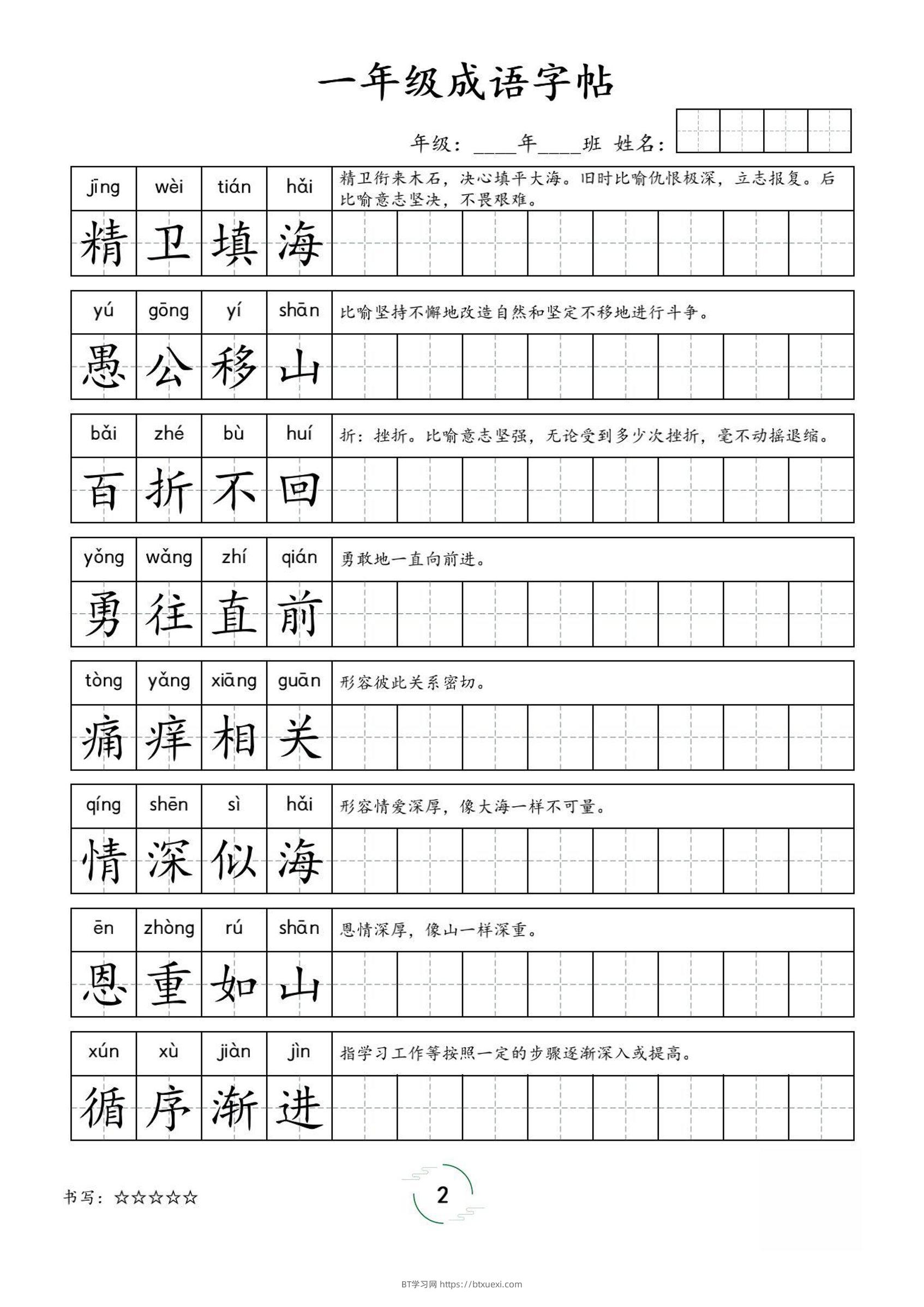 一年级成语字帖-一上语文超级管理员25年7月10日发布关注私信029812 ——预览已结束,还剩2页未读——开通会员后可免费下载高清完整文档 © 版权声明文章版权归作者所有,转载请注明来源,未经允许请勿转载。本站内容均来自用户投稿或网络公开收集,本站只做展示,不对内容真实性负责。THE END小学语文 喜欢就支持一下吧点赞12 分享QQ空间微博QQ好友海报分享复制链接收藏