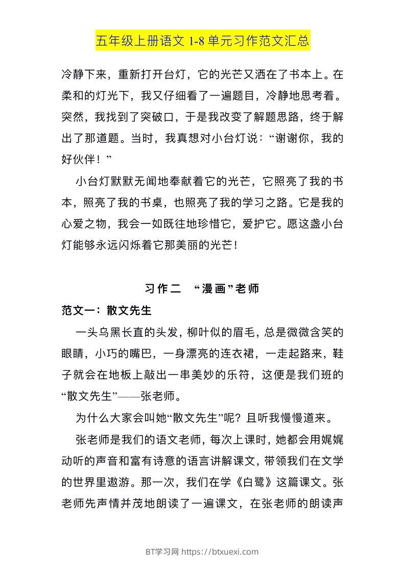 五上语文1-8单元习作范文汇总超级管理员25年7月14日发布关注私信037113 ——预览已结束,还剩10页未读——开通会员后可免费下载高清完整文档 © 版权声明文章版权归作者所有,转载请注明来源,未经允许请勿转载。本站内容均来自用户投稿或网络公开收集,本站只做展示,不对内容真实性负责。THE END小学语文 喜欢就支持一下吧点赞13 分享QQ空间微博QQ好友海报分享复制链接收藏