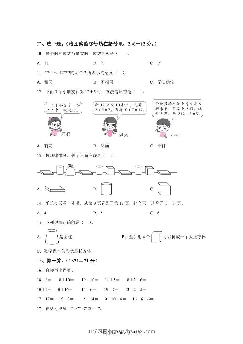 人教版数学一年级上册第四单元《11~20的认识》单元测试卷超级管理员25年7月17日发布关注私信028210 ——预览已结束,还剩10页未读——开通会员后可免费下载高清完整文档 © 版权声明文章版权归作者所有,转载请注明来源,未经允许请勿转载。本站内容均来自用户投稿或网络公开收集,本站只做展示,不对内容真实性负责。THE END小学数学 喜欢就支持一下吧点赞10 分享QQ空间微博QQ好友海报分享复制链接收藏