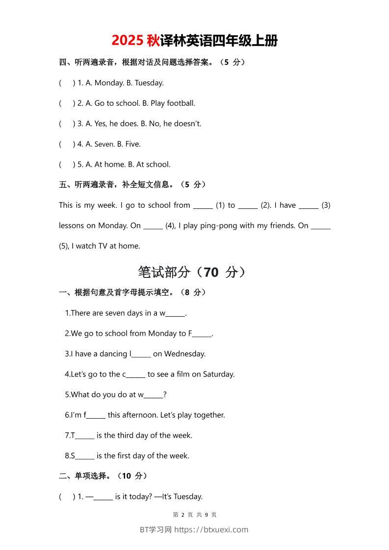 2025年秋译林版四上英语Unit3Myweek单元测试卷超级管理员25年7月23日发布关注私信03965 ——预览已结束,还剩7页未读——开通会员后可免费下载高清完整文档 © 版权声明文章版权归作者所有,转载请注明来源,未经允许请勿转载。本站内容均来自用户投稿或网络公开收集,本站只做展示,不对内容真实性负责。THE END小学英语 喜欢就支持一下吧点赞5 分享QQ空间微博QQ好友海报分享复制链接收藏