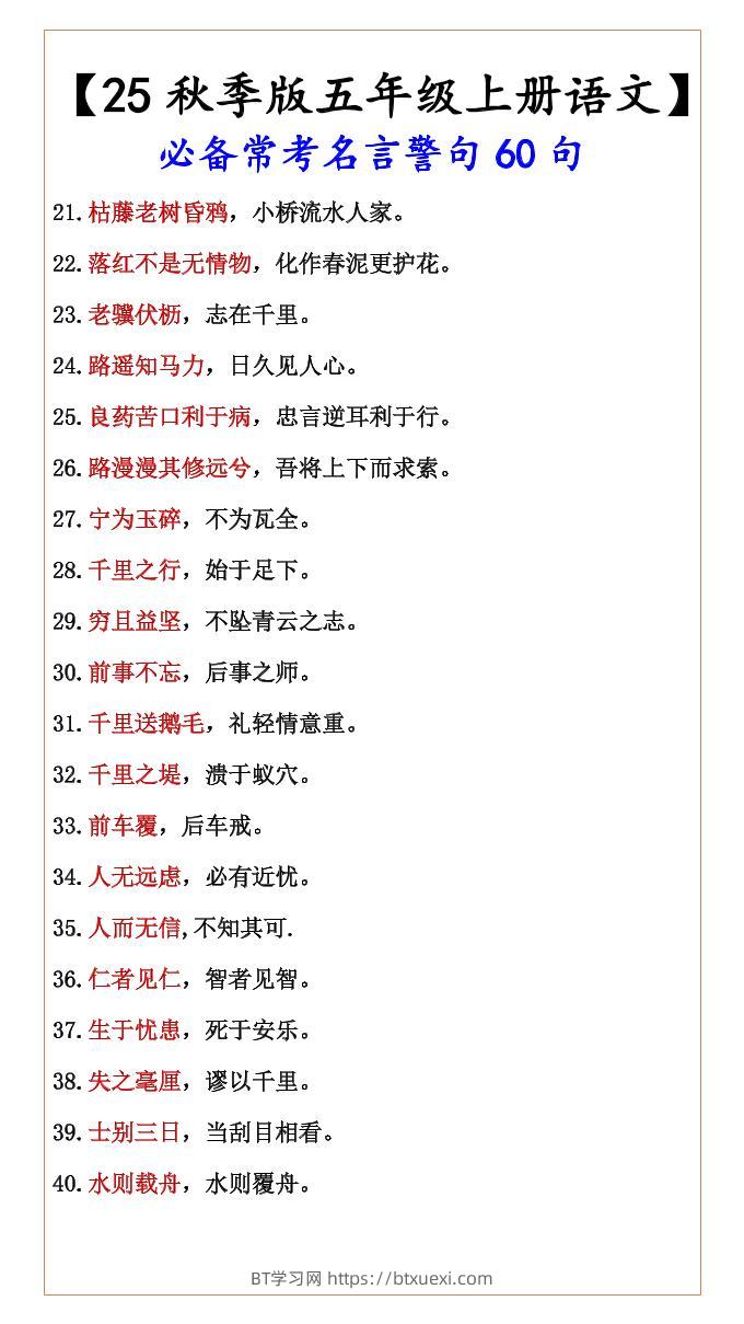 【2025秋新版】【五年级上册语文】必备常考名言警句60句超级管理员25年7月26日发布关注私信042911 ——预览已结束,还剩1页未读——开通会员后可免费下载高清完整文档 © 版权声明文章版权归作者所有,转载请注明来源,未经允许请勿转载。本站内容均来自用户投稿或网络公开收集,本站只做展示,不对内容真实性负责。THE END小学语文 喜欢就支持一下吧点赞11 分享QQ空间微博QQ好友海报分享复制链接收藏