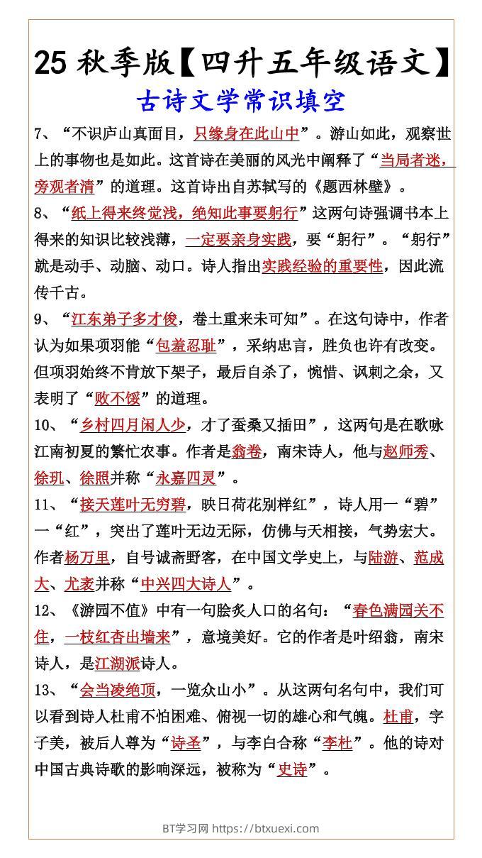【2025秋新版】【四升五年级语文】古诗文学常识填空-五上语文超级管理员25年7月27日发布关注私信03835 ——预览已结束,还剩3页未读——开通会员后可免费下载高清完整文档 © 版权声明文章版权归作者所有,转载请注明来源,未经允许请勿转载。本站内容均来自用户投稿或网络公开收集,本站只做展示,不对内容真实性负责。THE END小学语文 喜欢就支持一下吧点赞5 分享QQ空间微博QQ好友海报分享复制链接收藏