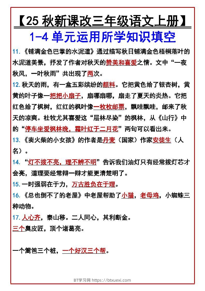 【2025秋新版】【三年级语文上册】1-4单元运用所学知识填空超级管理员25年7月28日发布关注私信03297 ——预览已结束,还剩1页未读——开通会员后可免费下载高清完整文档 © 版权声明文章版权归作者所有,转载请注明来源,未经允许请勿转载。本站内容均来自用户投稿或网络公开收集,本站只做展示,不对内容真实性负责。THE END小学语文 喜欢就支持一下吧点赞7 分享QQ空间微博QQ好友海报分享复制链接收藏