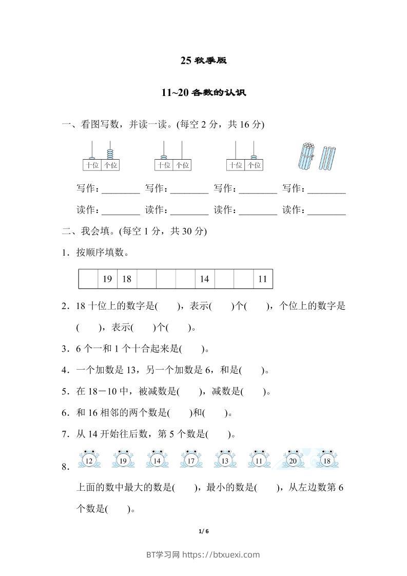 【2025秋新版】一年级上册数学专项测试卷:11~20各数的认识附答案超级管理员25年8月25日发布关注私信02939 ——预览已结束,还剩4页未读——开通会员后可免费下载高清完整文档 © 版权声明文章版权归作者所有,转载请注明来源,未经允许请勿转载。本站内容均来自用户投稿或网络公开收集,本站只做展示,不对内容真实性负责。THE END小学数学 喜欢就支持一下吧点赞9 分享QQ空间微博QQ好友海报分享复制链接收藏