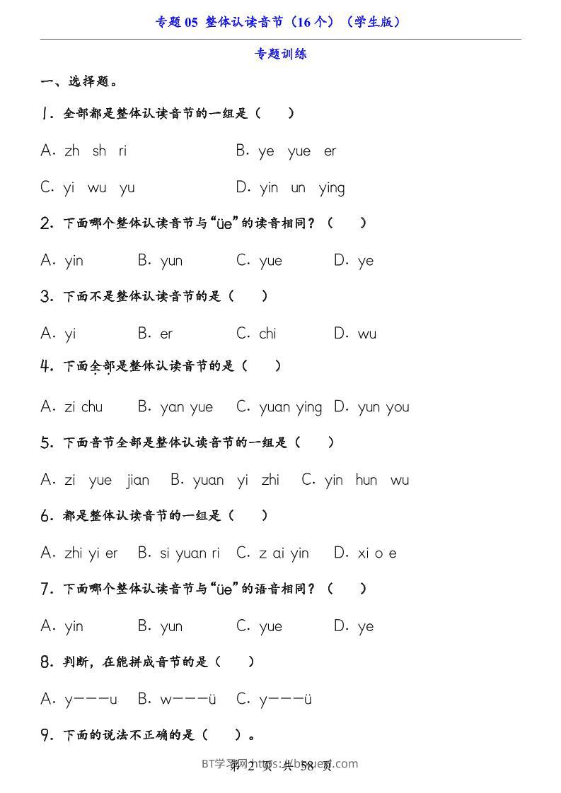 一上语文-专题05整体认读音节(16个)(知识+训练)超级管理员25年9月21日发布关注私信042115 ——预览已结束,还剩56页未读——开通会员后可免费下载高清完整文档 © 版权声明文章版权归作者所有,转载请注明来源,未经允许请勿转载。本站内容均来自用户投稿或网络公开收集,本站只做展示,不对内容真实性负责。THE END小学语文 喜欢就支持一下吧点赞15 分享QQ空间微博QQ好友海报分享复制链接收藏