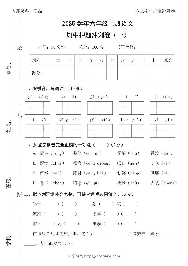 六上语文期中押题冲刺卷5套(含答案39页)超级管理员25年11月11日发布关注私信08710 ——预览已结束,还剩37页未读——开通会员后可免费下载高清完整文档 © 版权声明文章版权归作者所有,转载请注明来源,未经允许请勿转载。本站内容均来自用户投稿或网络公开收集,本站只做展示,不对内容真实性负责。THE END小学语文 喜欢就支持一下吧点赞10 分享QQ空间微博QQ好友海报分享复制链接收藏